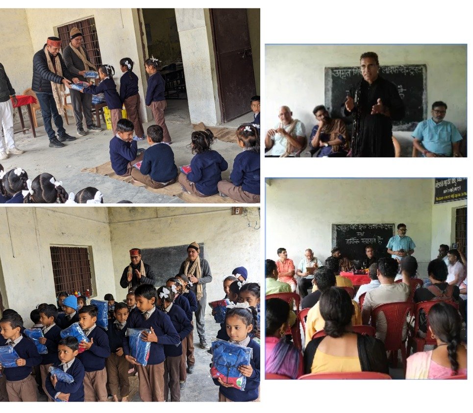 Presided over by Prof. Girish Kumar, HOD of Political Science at the University of Kerala, the program included participation from dignitaries like Sri Sandeep Kumar (Grama Pradhan), Avinash Nautiyal (School President), and Sri Denny Amrithagiri (Chairman, Amrithagiri Himalaya). Villagers voiced their struggles, and Sri Mahipal Singh Thakur, President of Amrithagiri Ashram Himalaya, presented a ₹1 lakh cheque to support the school’s development, continuing Amrithagiri’s three-year financial support.